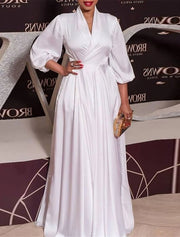 Women‘s Formal Party Dress Wedding Guest Dress Swing Dress Long Dress Maxi Dress Green Black Red Half Sleeve Pure Color Ruched Winter Fall V Neck Mature Evening Party - White / US 2 / UK 6 / EU 32