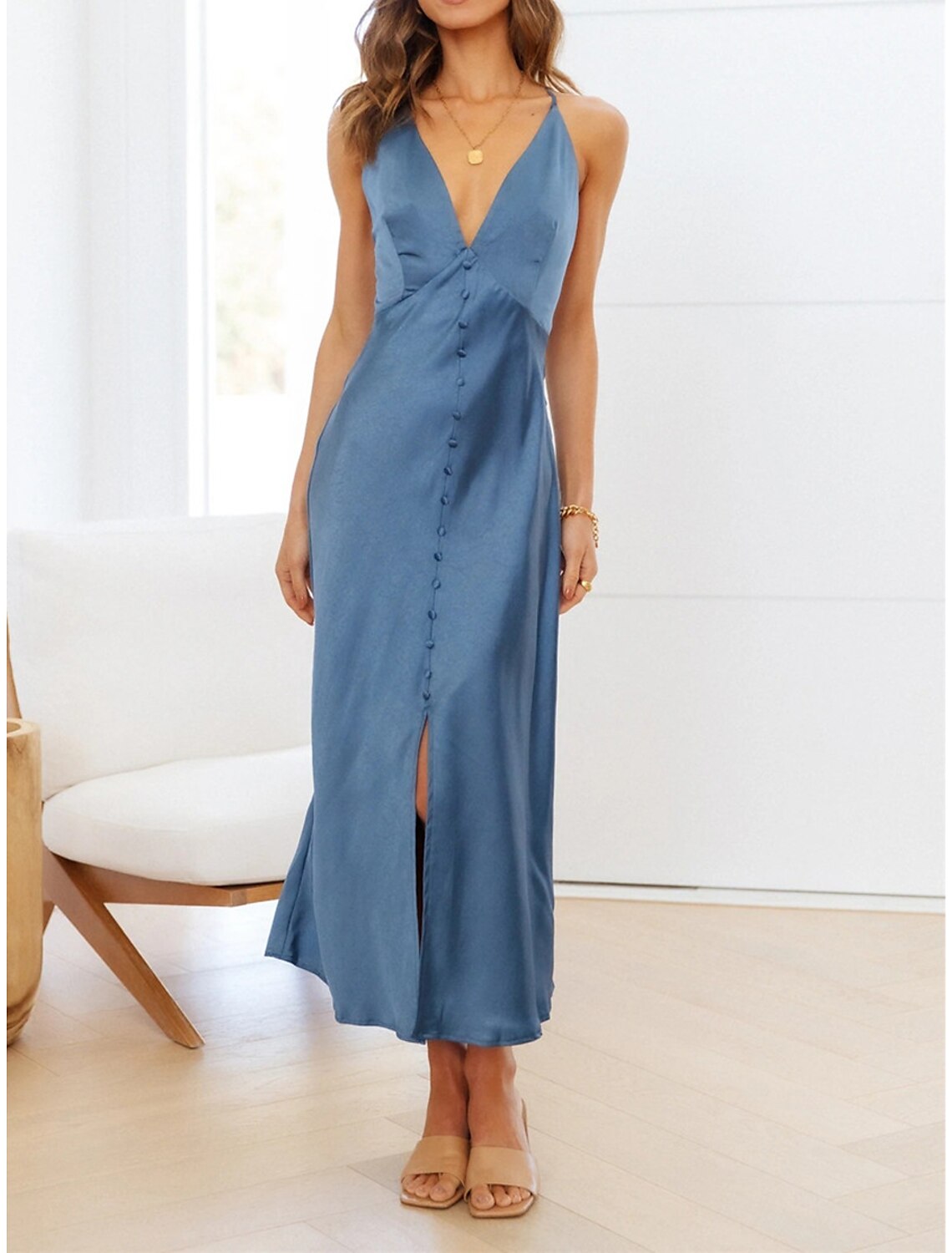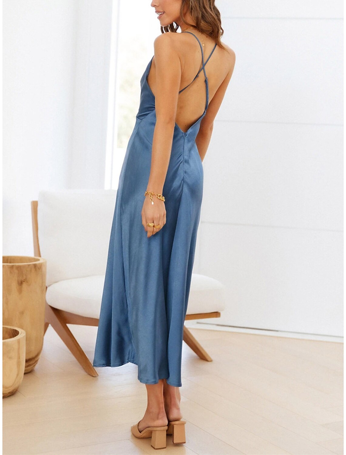 Women's Prom Dress Party Dress Wedding Guest Dress Long Dress Maxi Dress Black Light Blue Sleeveless Plain Backless Summer Spring Fall Spaghetti Strap Elegant Wedding Guest Evening Party Vacation - Light Blue / US 2 / UK 6 / EU 32