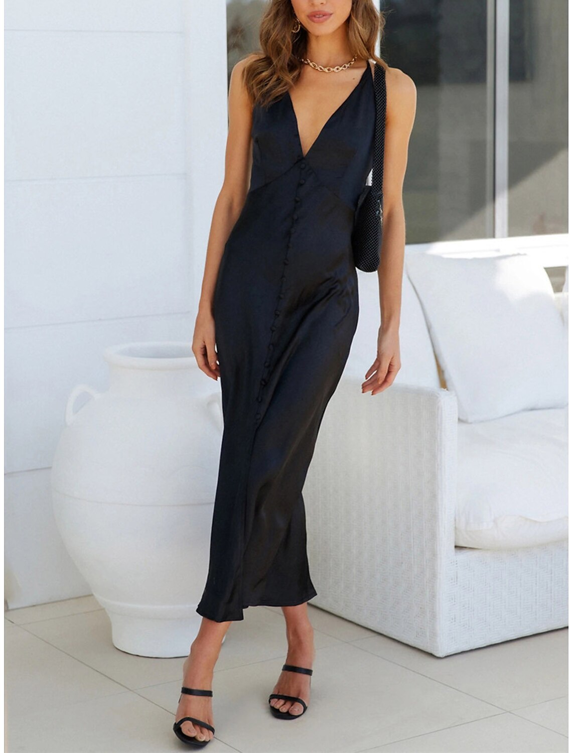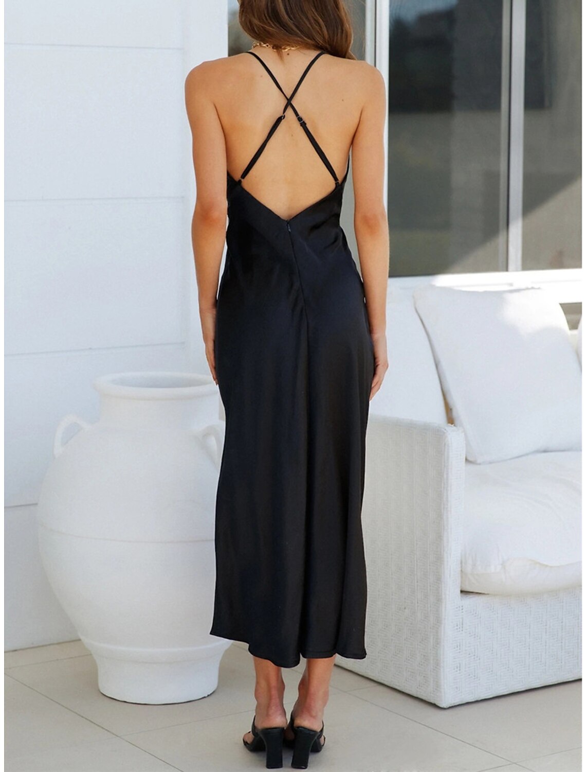 Women's Prom Dress Party Dress Wedding Guest Dress Long Dress Maxi Dress Black Light Blue Sleeveless Plain Backless Summer Spring Fall Spaghetti Strap Elegant Wedding Guest Evening Party Vacation