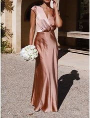 Women's Prom Dress Party Dress Wedding Guest Dress Long Dress Maxi Dress Black Pink Blue Short Sleeve Plain Ruched Summer Spring Fall V Neck Red Valentines Dress Valentine's Day Wedding Guest Birthday - US 2 / UK 6 / EU 32