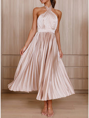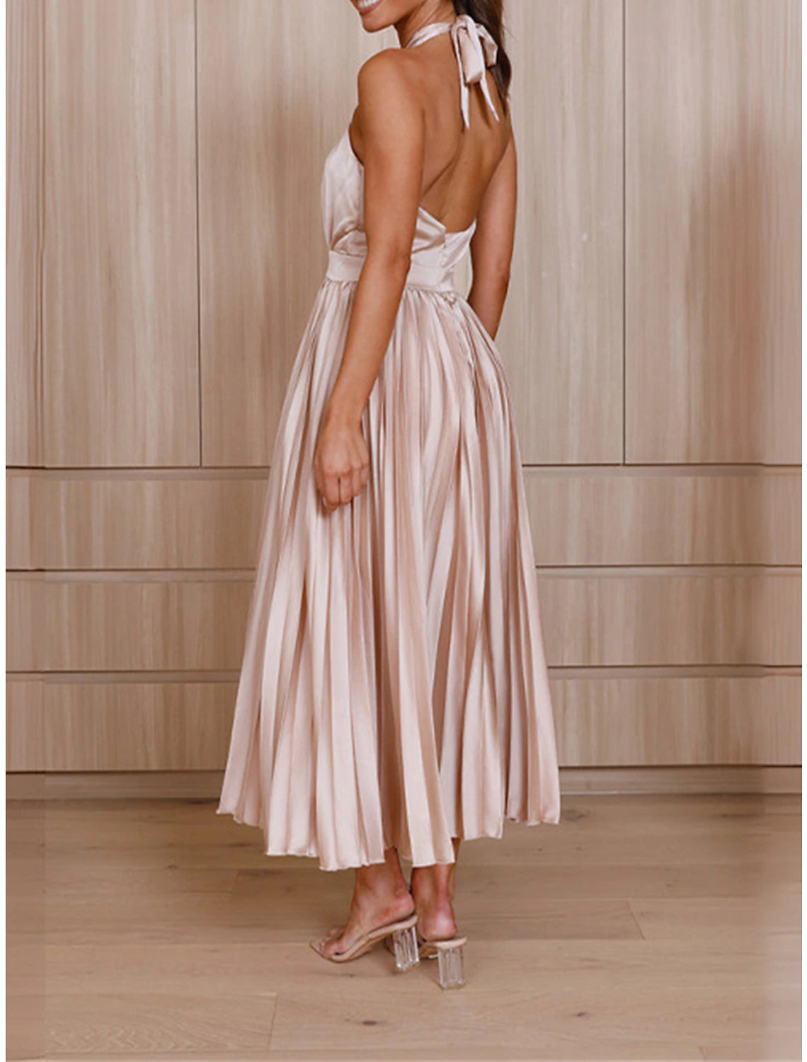 Women's Prom Dress Party Dress Wedding Guest Dress Long Dress Maxi Dress Black Pink Royal Blue Sleeveless Plain Pleated Summer Spring Fall Halter Neck Elegant Wedding Guest Birthday Evening Party