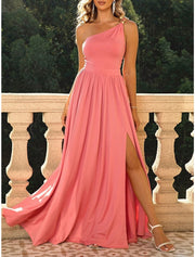 Women's Prom Dress Party Dress Wedding Guest Dress Long Dress Maxi Dress Black White Pink Sleeveless Pure Color Ruched Fall Winter Autumn One Shoulder Fashion Winter Dress Wedding Guest Evening Party - US 2 / UK 6 / EU 32