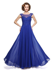 A-Line Mother of the Bride Dress Elegant Jewel Neck Ankle Length Chiffon Lace Sleeveless with Appliques
