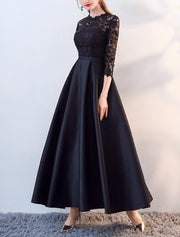 A-Line Mother of the Bride Dress Elegant Jewel Neck Ankle Length Satin Lace 3/4 Length Sleeve with Lace Appliques - US 2 / UK 6 / EU 32