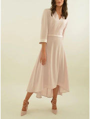A-Line Mother of the Bride Dress Simple Elegant V Neck Asymmetrical Ankle Length Stretch Chiffon 3/4 Length Sleeve with Pleats Solid Color - US 2 / UK 6 / EU 32