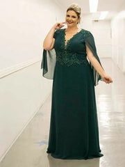 A-Line/Princess 30D Chiffon Applique V-neck Sleeveless Floor-Length Plus Size Mother of the Bride Dresses - US 2 / UK 6 / EU 32