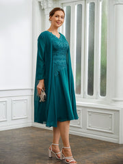 A-Line/Princess Chiffon Ruched V-neck Short Sleeves Knee-Length Mother – Buyishang Dresses index