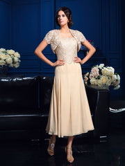 A-Line/Princess Square Applique Sleeveless Short Chiffon Mother of the Bride Dresses