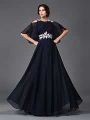 A-Line/Princess Straps Applique 1/2 Sleeves Long Chiffon Mother of the Bride Dresses