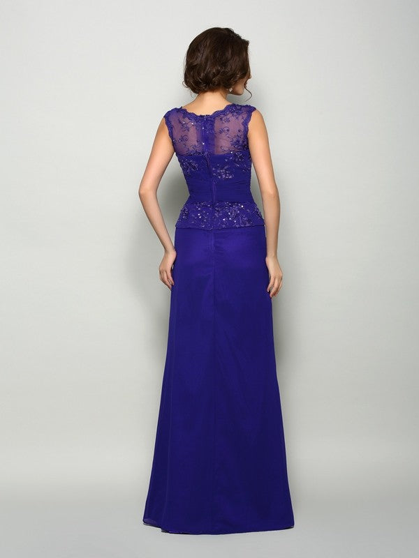 A-Line/Princess V-neck Beading Sleeveless Long Chiffon Mother of the Bride Dresses