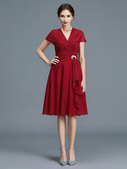 A-Line/Princess V-neck Chiffon Sleeveless Knee-Length Ruffles Mother of the Bride Dresses