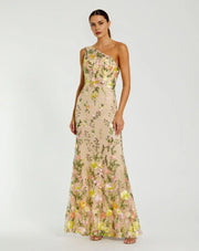 One-Shoulder Floral Embroidered Mermaid Mother of the Bride Dress. Occasions: Prom, black tie events, formal weddings, and upscale parties.