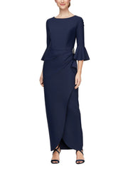 Sheath / Column Mother of the Bride Dress Formal Wedding Guest Party Elegant Scoop Neck Ankle Length Taffeta 3/4 Length Sleeve with Split Front Crystal Brooch Ruching - US 2 / UK 6 / EU 32