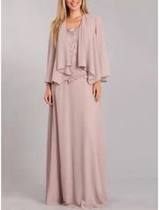 Sheath / Column Mother of the Bride Dress Wedding Guest Elegant Scoop Neck Floor Length Chiffon Lace Long Sleeve with Ruching Solid Color