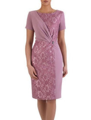 Sheath / Column Mother of the Bride Dress Wedding Guest Party Elegant Scoop Neck Knee Length Chiffon Lace Short Sleeve with Crystal Brooch