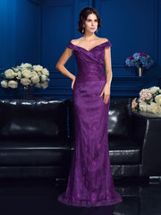 Sheath/Column Off-the-Shoulder Lace Sleeveless Long Lace Mother of the Bride Dresses