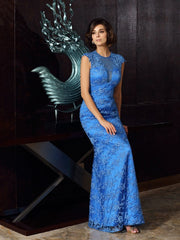 Trumpet/Mermaid High Neck Applique Sleeveless Long Satin Mother of the Bride Dresses