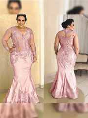 Trumpet/Mermaid Satin Applique V-neck Long Sleeves Floor-Length Mother of the Bride Dresses