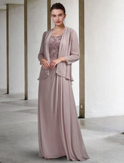 Two Piece Sheath / Column Mother of the Bride Dress Plus Size Elegant Jewel Neck Floor Length Chiffon Lace Sleeveless Wrap Included with Sequin Appliques