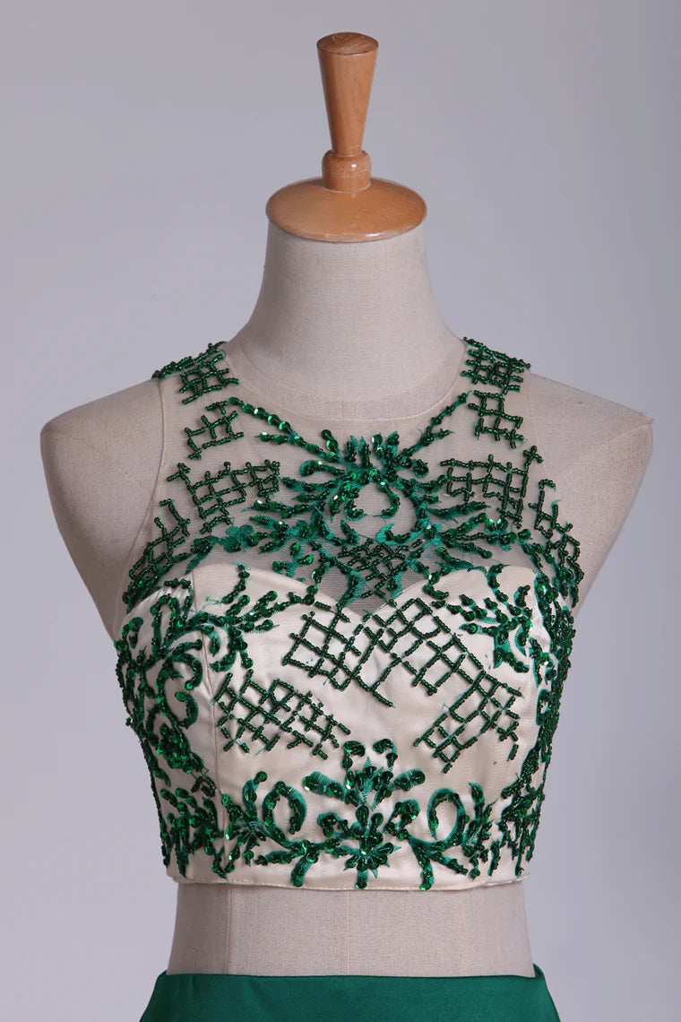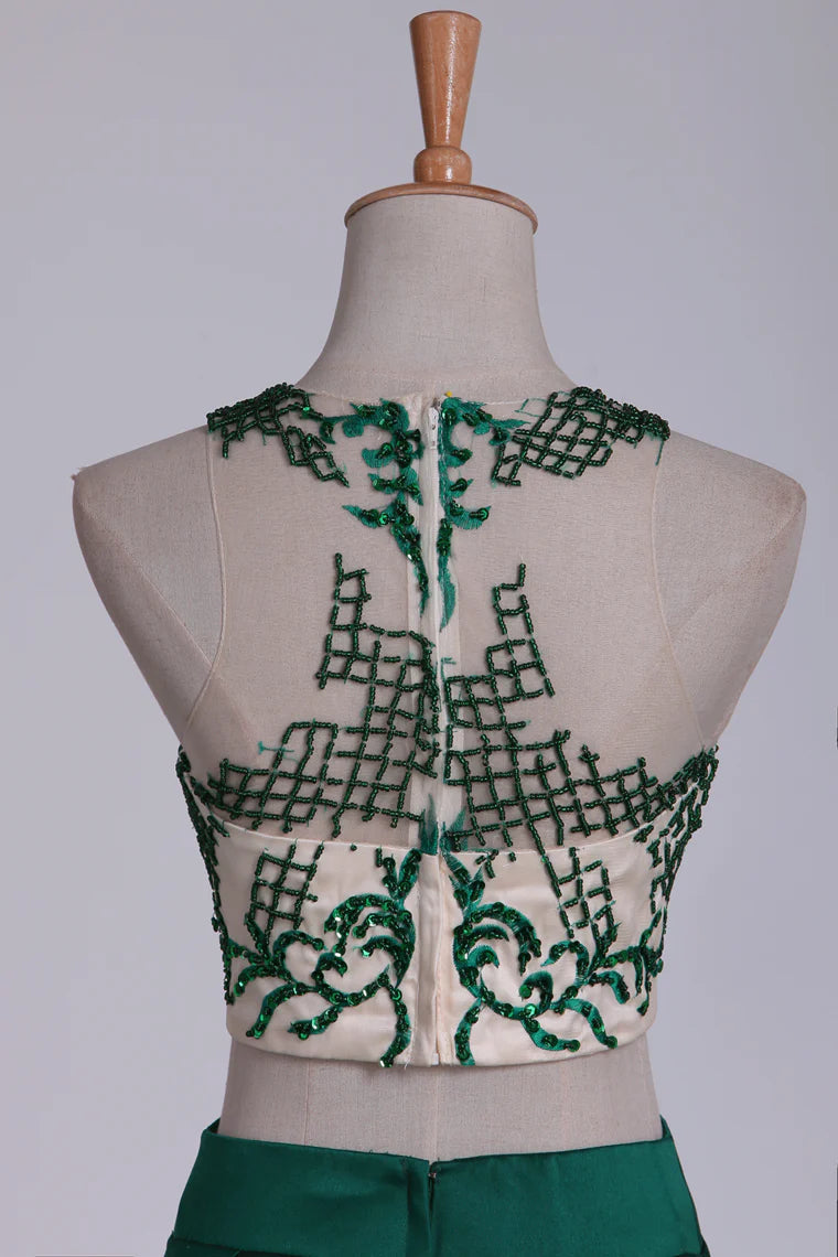 A Line Beaded Bodice Scoop Party Dresses Satin & Tulle Sweep Train - US 2 / UK 6 / EU 32