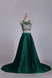 A Line Beaded Bodice Scoop Party Dresses Satin & Tulle Sweep Train