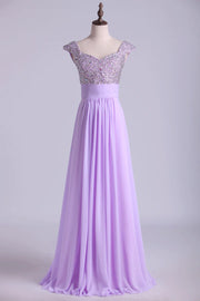 A Line Chiffon Party Dresses Beaded And Ruffled Floor Length