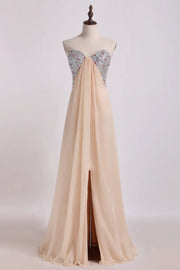 A Line Party Dresses Chiffon With Slit&Beads Floor Length