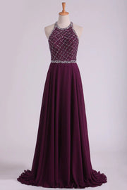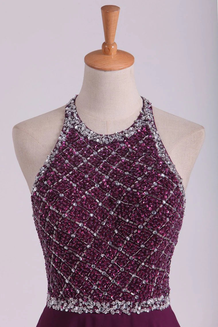 A Line Party Dresses Halter Beaded Bodice Open Back Sweep Train Chiffo – Buyishang Dresses index