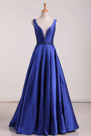 A Line Party Dresses Straps Beaded Waistline Satin Floor Length
