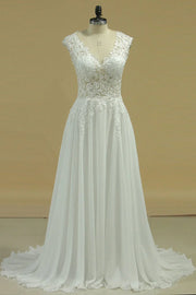 A Line V Neck Party Dresses Chiffon With Applique