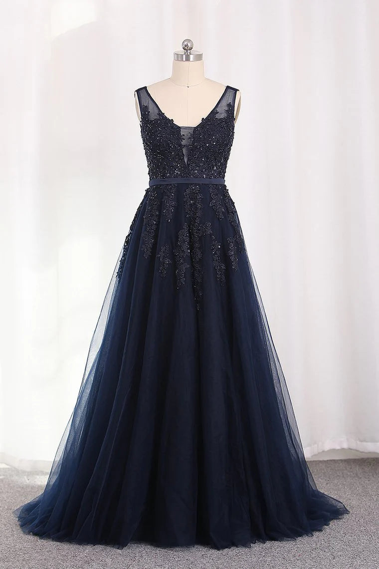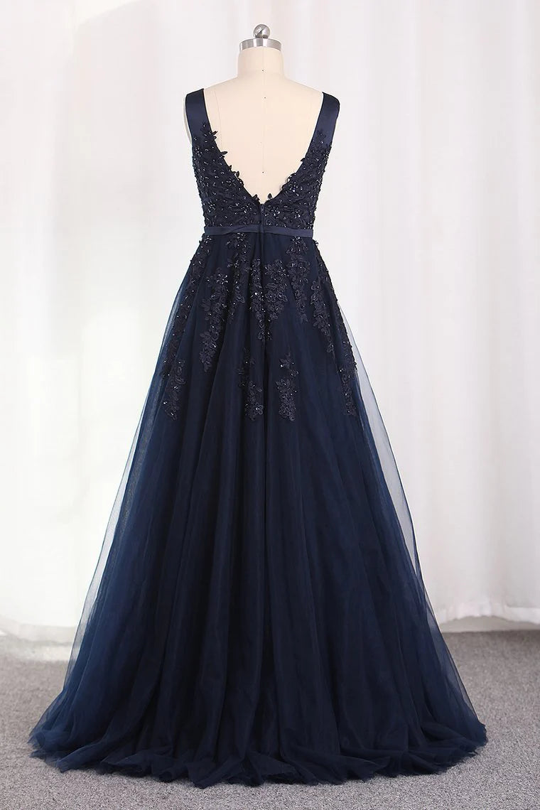 A Line V Neck Tulle Open Back Party Dresses With Applique – Buyishang Dresses index
