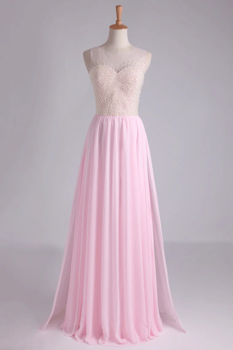A Line With Layered Flowing Chiffon Party Dress Floor Length