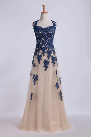 Back Tulle Party Dress Straps Floor Length Lace Bodice With Applique