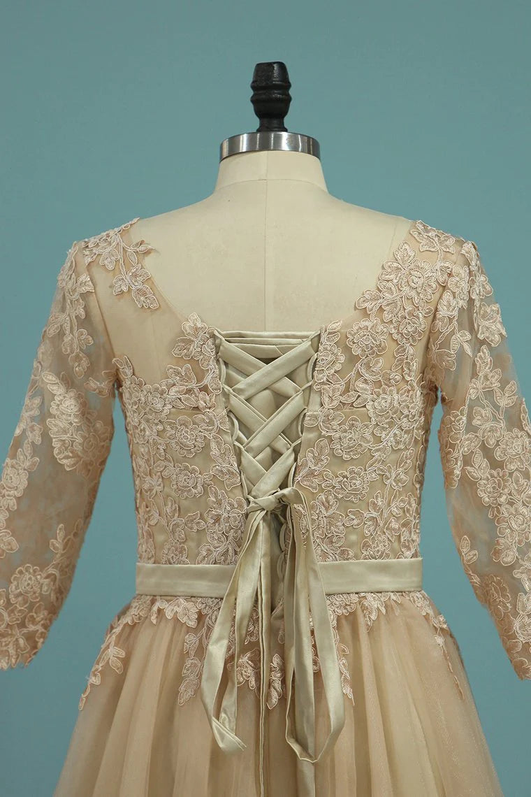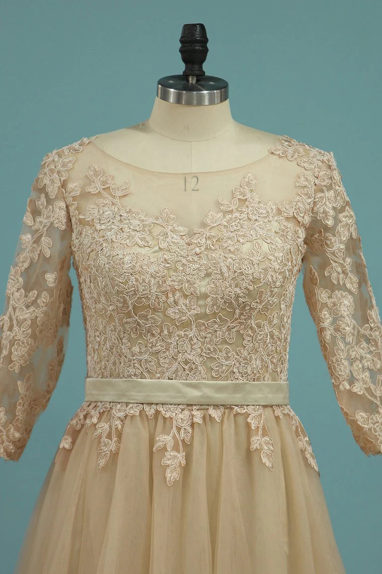Bateau A Line 3/4 Length Sleeves Party Dresses With Applique