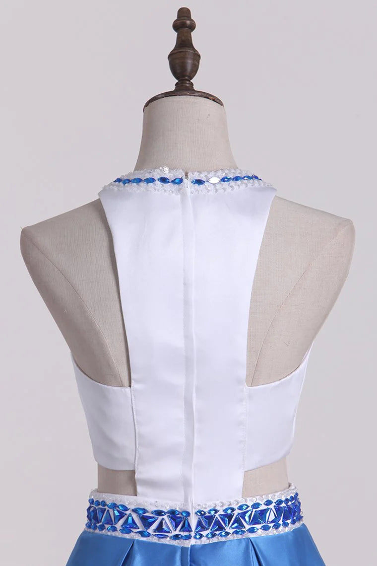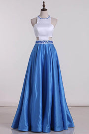 Bicolor Scoop A Line Party Dresses Satin With Beading Sweep Train - US 2 / UK 6 / EU 32