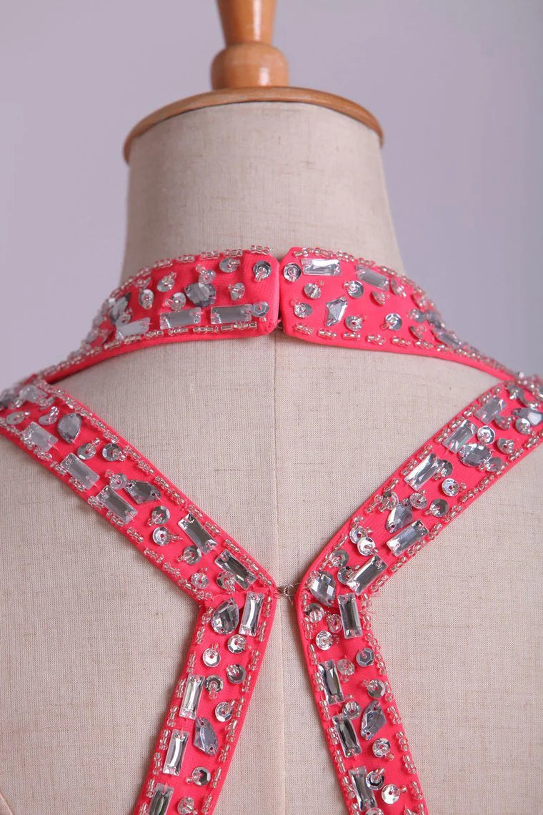 Chiffon Halter Party Dress Sexy A Line Court Train