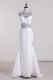 Lace Scoop With Beading Mermaid Sweep Train Party Dresses