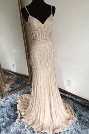 Mermaid Spaghetti Straps V-Neck Sparkly Open Back Prom Dress Party Dress
