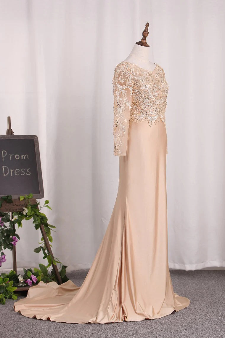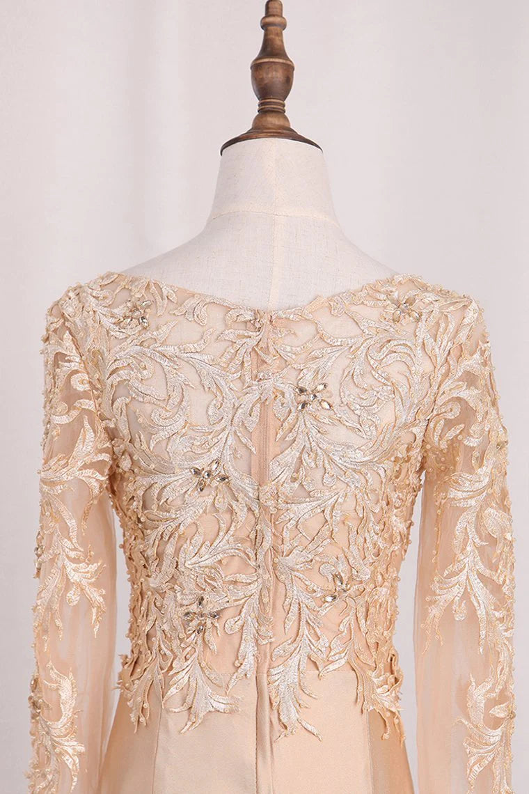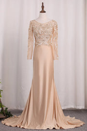 Mermaid Spandex V Neck Long Sleeves Party Dresses With Applique And Beads