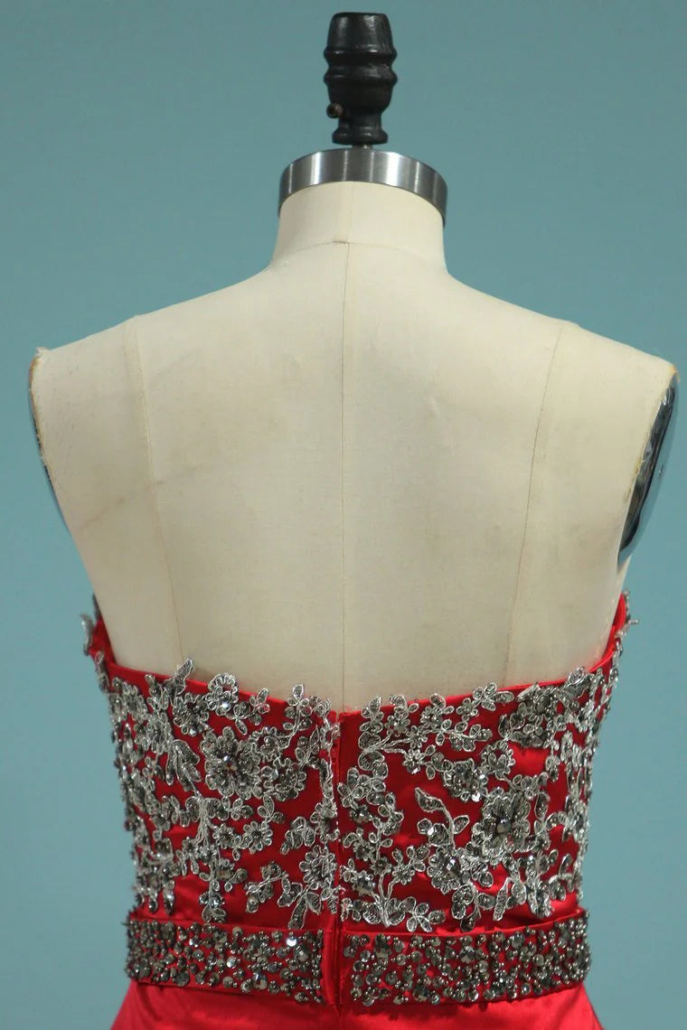 Mermaid V Neck Party Dresses Satin With Beads&Appliques - US 2 / UK 6 / EU 32