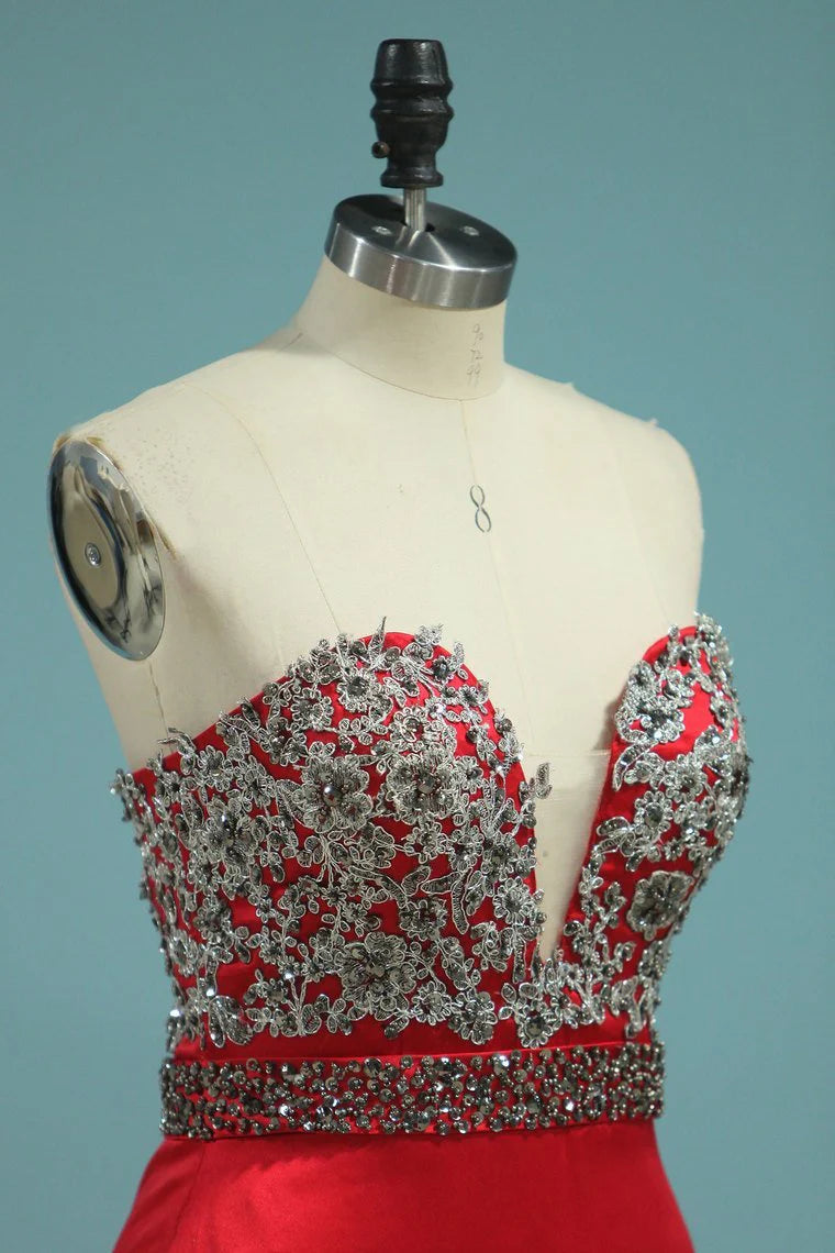 Mermaid V Neck Party Dresses Satin With Beads&Appliques