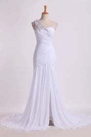 One Shoulder Party Dresses Fitted And Pleated Bodice Mermaid Beaded