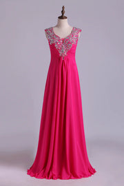 Party Dress V Neck Chiffon Floor Length - US 2 / UK 6 / EU 32
