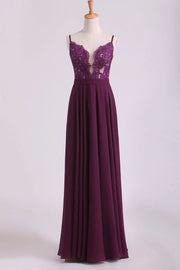 Party Dresses A Line Spaghetti Straps Chiffon With Applique Floor Length