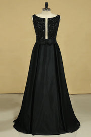Party Dresses Black Bodice Scoop Satin Floor Length Beaded & Belt