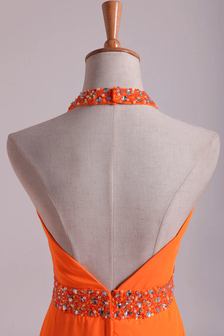 Party Dresses Halter Sheath Chiffon With Beads And Ruffles Floor Lengt – Buyishang Dresses index