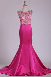 Party Dresses Mermaid/Trumpet Bateau Beaded Bodice Satin Sweep Train