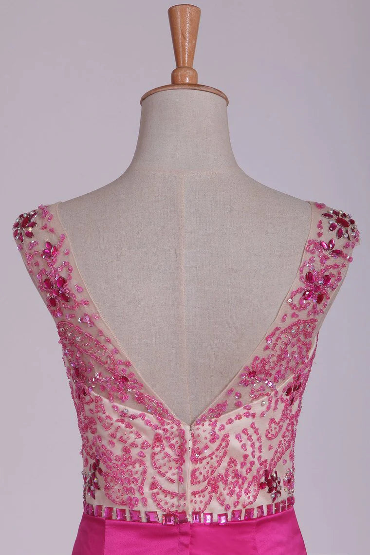 Party Dresses Mermaid/Trumpet Bateau Beaded Bodice Satin Sweep Train - US 2 / UK 6 / EU 32