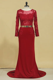 Party Dresses Scoop Mermaid/Trumpet With Applique & Gold Sash Sweep Train