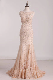 Party Dresses See-Through Scoop With Applique And Beading Tulle Mermaid